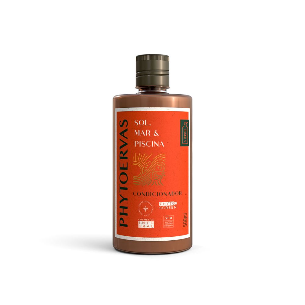 O Condicionador Sol Mar e Piscina Phytoervas foi formulado com phytoscreen, um complexo vegetal composto de palo pichi, aquileia, verbasco, macela e arginina, além de filtro uv, combinação que proporciona ação fotoprotetora para os cabelos, potencializa o brilho, protege contra o envelhecimento e conserva a elasticidade dos fios, hidratando e restaurando. **sem adição de cloreto de sódio.